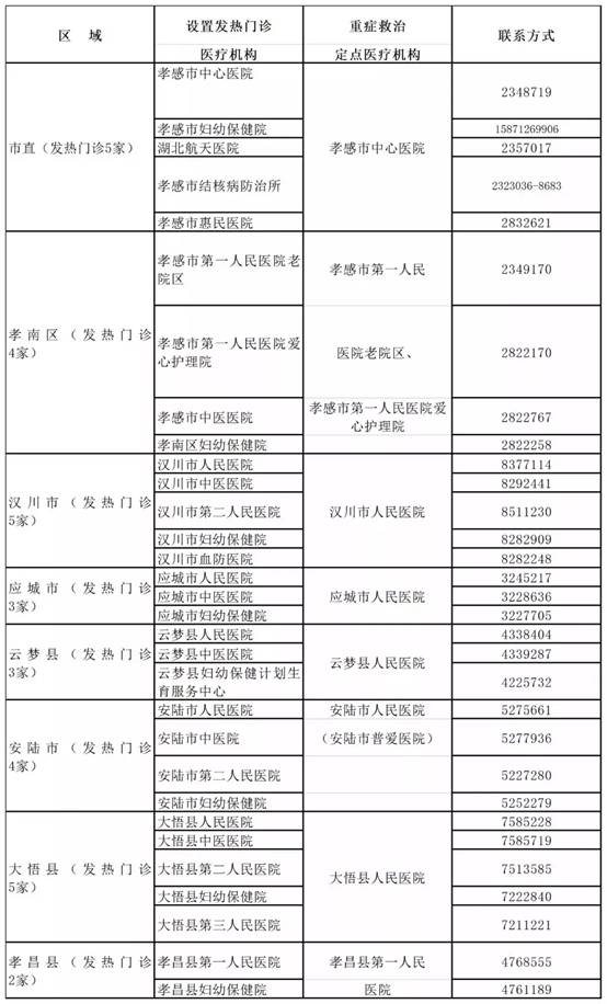 孝感市关于公布31家发热门诊医疗机构和9家定点救治医疗机构名单的公告(2号令)