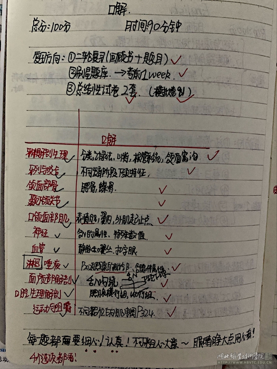 口解和诊断以书本为主,口解我的复习规划是:先看一单元书,再做这一单元的题目,印象会很深,然后看完一遍书本再看第二遍,再做综合卷。我觉得湖科的口解考得不是看起来那么简单的,还是会考一些很细节的东西,得仔细反复看书,把书本吃透。口解看起来是会枯燥一些,学不懂的时候可以看视频,这样理解起来会简单些。每学完一章可以像这样自己总结一下,后面方便复习。