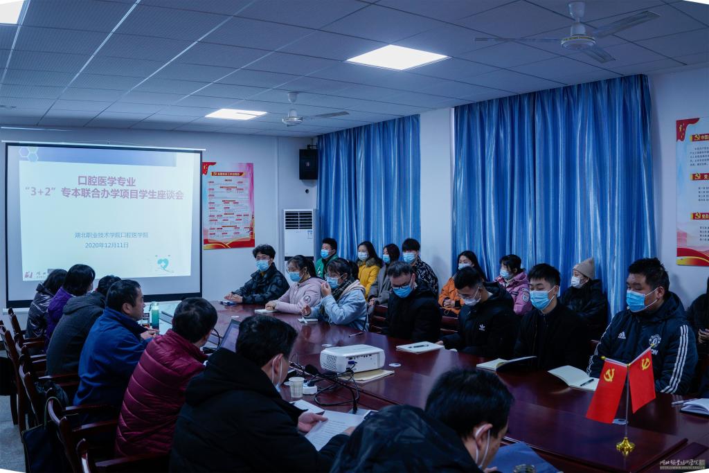 口腔医学专业“3+2”专本联合办学项目是2017年经省教育厅批准,由我校与荆楚理工学院共同举办的,每届招生70名,至今已招生四届。为加强对口腔医学专业“3+2”专本联合办学项目管理,提高人才培养质量,999策略白菜官方网站每学期均召开项目学生座谈会,会议中肯定取得的成绩,分析存在的问题,现场解答同学们疑惑的问题,这一工作模式深受学生们的欢迎。