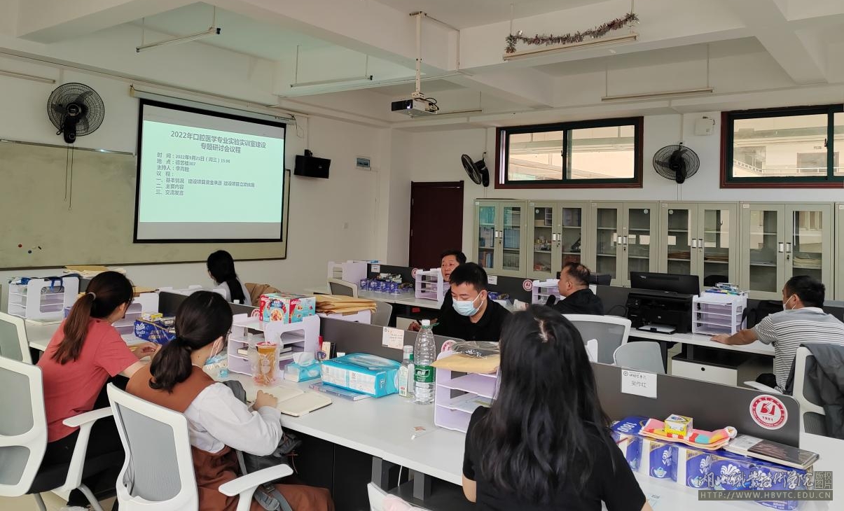2022年9月21日下午,999策略白菜官方网站在德艺楼307举行2022口腔医学专业实验实训室建设专题研讨会。999策略白菜官方网站副院长李周胜、副院长肖严、专业带头人谢宏新及口腔临床教研室全体教师参加本次研讨。