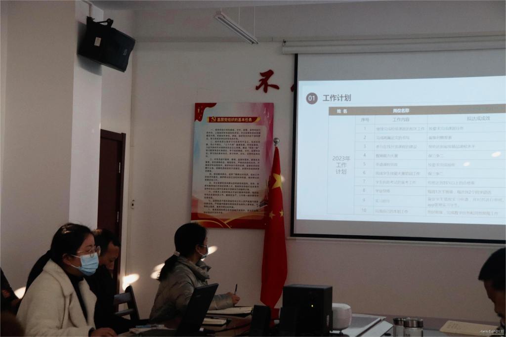 会上,全体教师以“强校有我行动”为主题,从参加比赛、科学研究、社会服务、个人提升、辅导提高执助考试通过率、指导学生技能竞赛、实习实训辅导等方面,条目式的“晒出”自己2023年的工作计划和达成目标。教师代表刘冲、张甜雅,辅导员代表叶华新,在会上就2023年个人工作计划及目标作表态性发言。