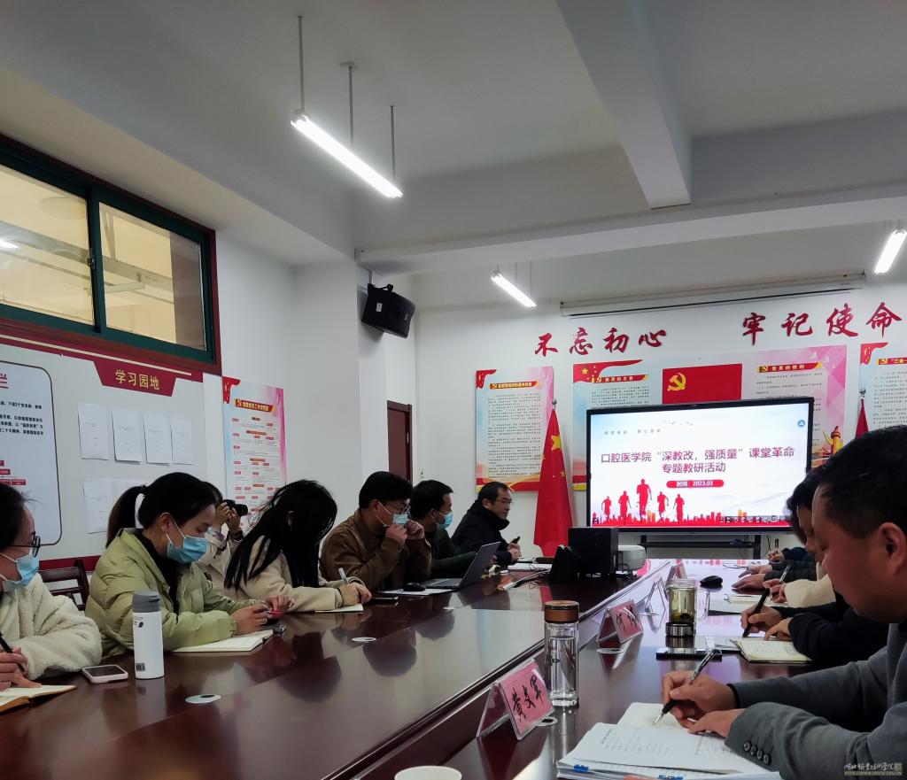 为全面贯彻学校第三次党代会精神,深入落实2023年全校教职工大会工作要求,努力在提高教育教学水平上实现新突破,999策略白菜官方网站于2023年3月29日下午3:00分在德艺楼202会议室召开了以“课堂革命”为主题的专题教研活动,会议由副院长肖严主持,999策略白菜官方网站院长何伟、副院长李周胜、教务处黄文军科长、护理学院专业带头人田樱主任、999策略白菜官方网站全体教师参加了会议。